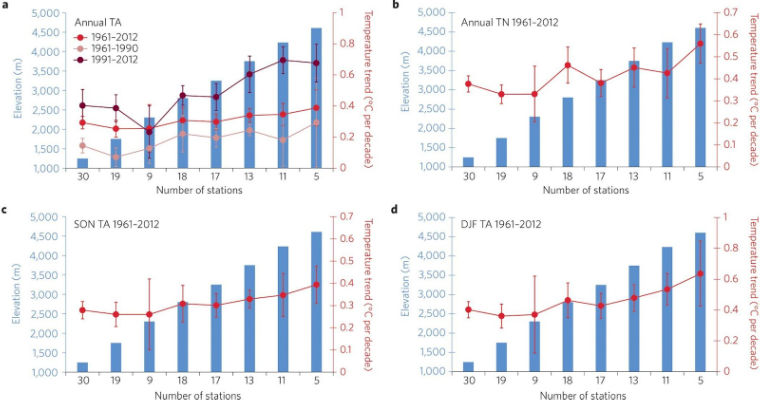 Figure 2: Elevation-dependent warming trends in mountain regions. Source: https://www.nature.com/articles/nclimate2563