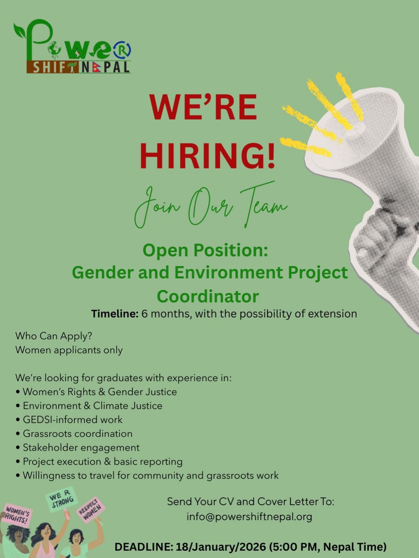 📢 Power Shift Nepal is calling women applicants interested to become a part of gender and climate justice driven work !!